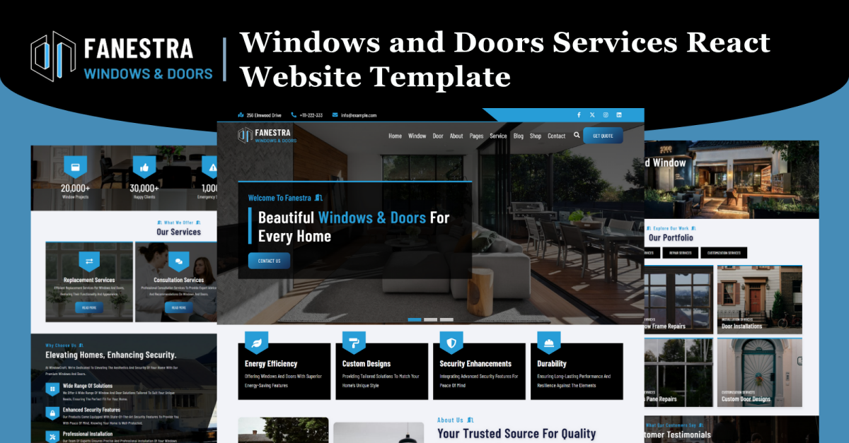 Fanestra – Windows and Doors Services React Website Template Fanestra is a meticulously designed React template crafted for window and door specialists, home renovation experts, and architectural consultants. Built with React.js, modern JavaScript, and fully responsive CSS3, it delivers exceptional performance, smooth navigation, and a polished visual experience across all …