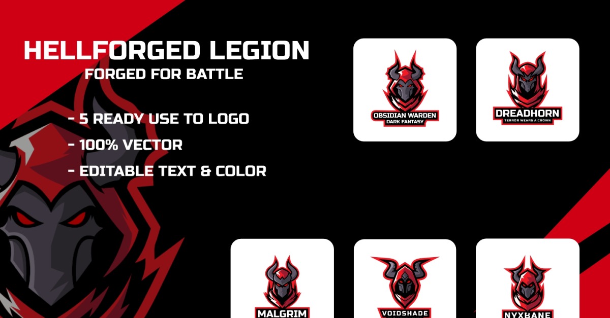 Hellforged Legion – Demon Warrior Mascot Logo Collection Hellforged Legion is a brutal and visually striking collection of five demon warrior mascot logos, each forged from chaos and fire. These crimson-armored titans are built to conquer — perfect for esports teams, gaming clans, stream overlays, or dark-themed merchandise. Crafted with …