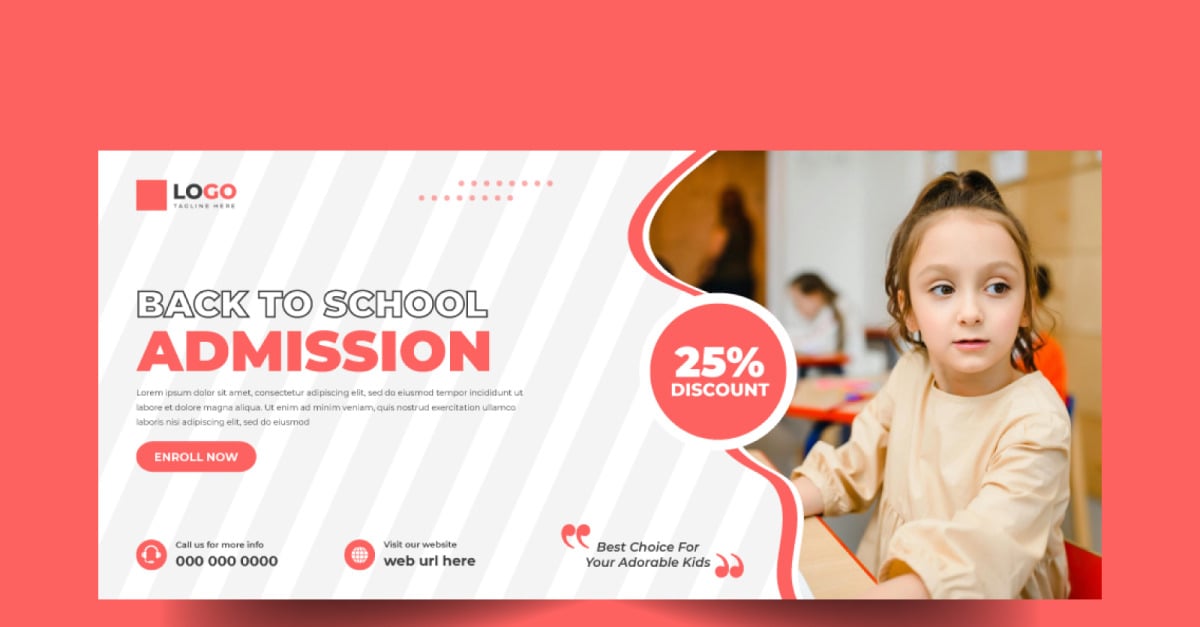 Kickstart the academic season with our eye-catching Back to School / School Admission Banner Template Design. Perfectly crafted for schools, educational institutions, coaching centers, and admission campaigns, this professional template helps you promote enrollment and welcome students in style. Featuring vibrant school-themed graphics, clean layouts, and bold typography, this banner …