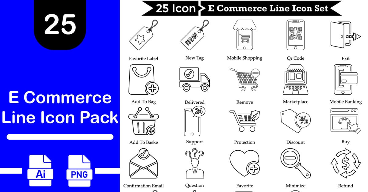 Beautiful, meticulously designed 25 E Commerce Line Icon Set . Perfect for use in designing and developing websites, printed materials, presentations, Promotional Materials, Illustrations, Info graphics or any type of design projects Features: • 25 E Commerce Line Icon Set • Fully editable 100% Vector AI files. • EPS File …