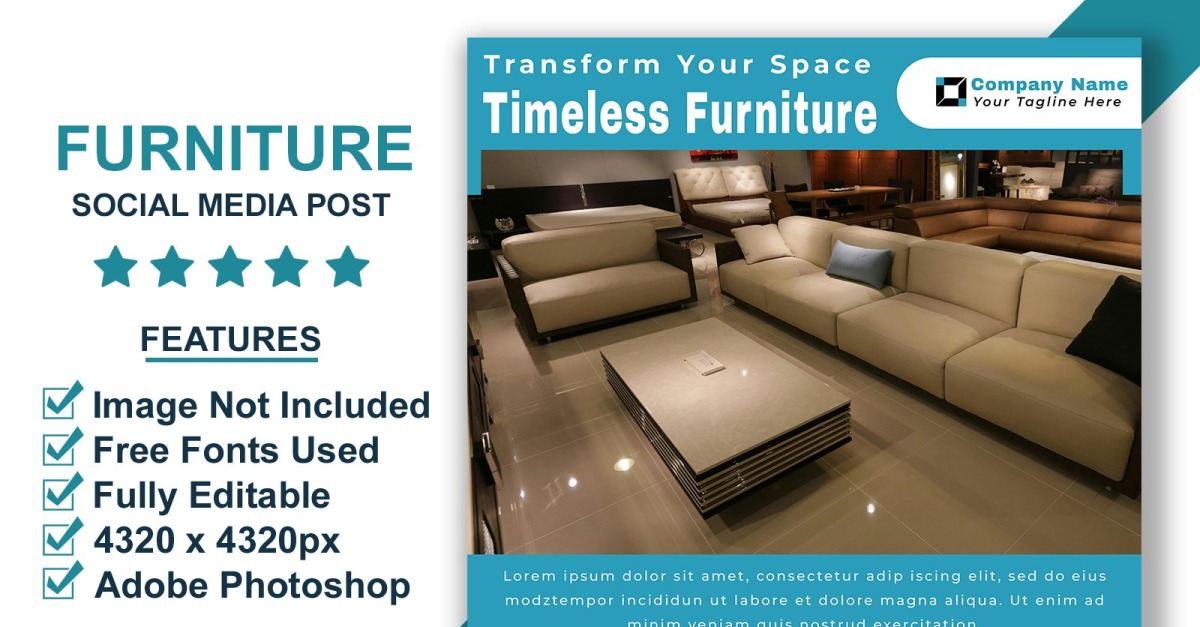 Modern Furniture Sale Social Media Post Template PSD Introducing a premium Modern Furniture Sale Social Media Post Template designed in Adobe Photoshop. Perfect for furniture shops, online stores, or home interior promotions. This square post template is ideal for Instagram marketing and is fully customizable. Change the text, insert your …