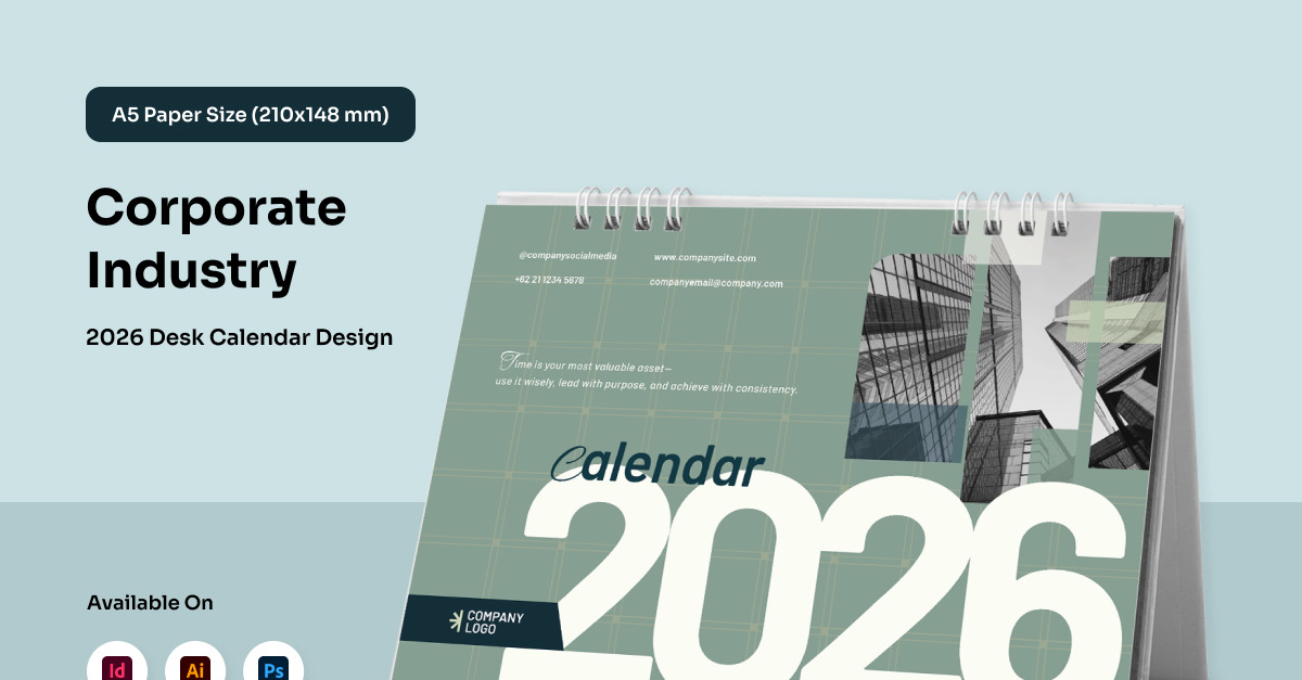 Maintain a clutter-free and professional workspace with this clean corporate desk calendar. The design prioritizes functionality, leaving enough space for notes and ensuring every month is easy to follow at a glance. Perfect for office teams, administrators, and managers looking for a practical yet visually cohesive calendar solution. Fully editable …