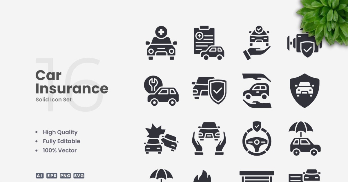 Set of 16 Car Insurance Solid Icons | Simple and clean design, perfect for websites, mobile apps, books, social media, infographics, flyer, print, banners, posters and many more. To resize or change color you can easily edit on vector software like Adobe Illustrator and CorelDRAW. Features : High Quality Design100% Vector100% …