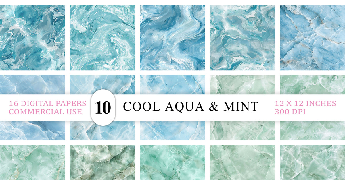16 Cool Aqua & Mint Marble Texture Background Bundle | Premium Quality | Commercial Use Ready Add a soft and romantic vibe to your creative projects with this Cool Aqua & Mint Marble Texture Bundle. This collection features seamless marble backgrounds. What You Get: ✔ 16 Unique Cool Aqua & Mint …