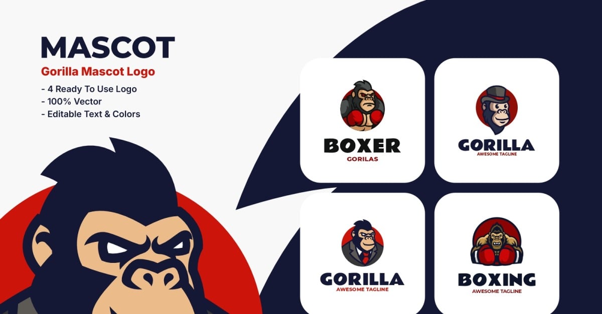 4 Mascot Gorilla Logos – Sport, Business, and Boxing Theme This powerful collection, 4 Mascot Gorilla Logos – Vol. 2, features dynamic gorilla characters designed for sports teams, businesses, fitness brands, and gaming identities. From a fierce boxer to a classy businessman, each mascot boasts bold lines, clean shapes, and …