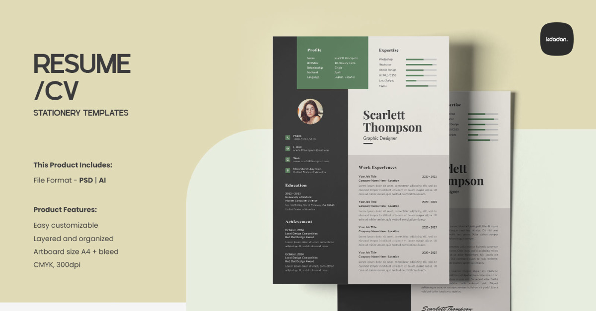 Overview : Modern and professional Resume/CV Template to help you stand out. Designed with a clean layout, it’s easy to edit in PSD, AI, or EPS. Perfect for any profession, from business to creative fields. Make a strong first impression with a polished, eye-catching resume! This Product Includes: – Compatible …