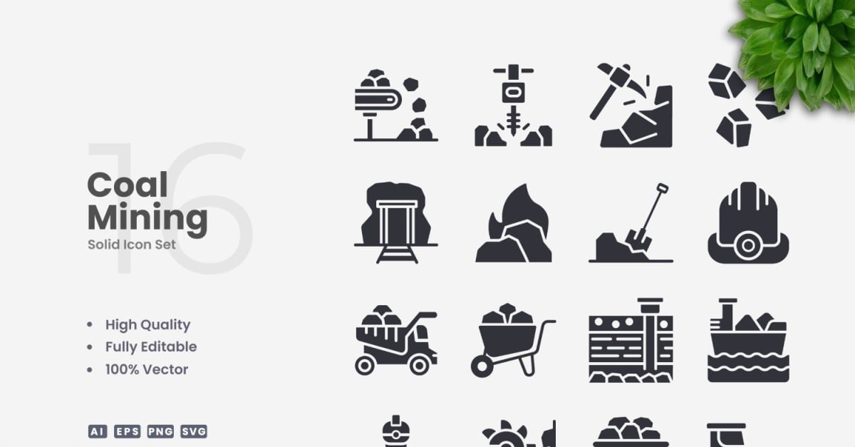 Set of 16 Coal Mining Solid Icons | Simple and clean design, perfect for websites, mobile apps, books, social media, infographics, flyer, print, banners, posters and many more. To resize or change color you can easily edit on vector software like Adobe Illustrator and CorelDRAW. Features : High Quality Design100% Vector100% …