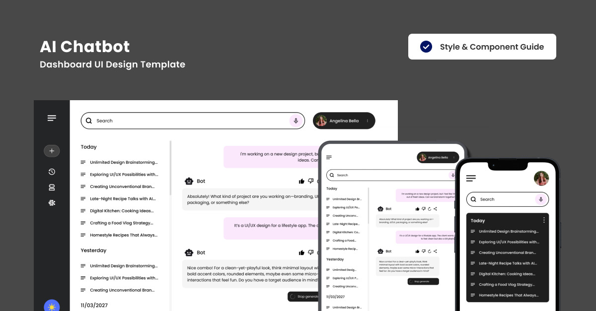 Present real-time AI chat interactions and bot analytics in a futuristic dashboard style. Designed for seamless UX and sleek minimalism, this template enhances user data visualization for smart AI management. **Highlights:** – Responsive Modern dashboard designs (Desktop, Tablet, & Mobile version) – Fully customizable and easy-to-edit components – Well-organized and …