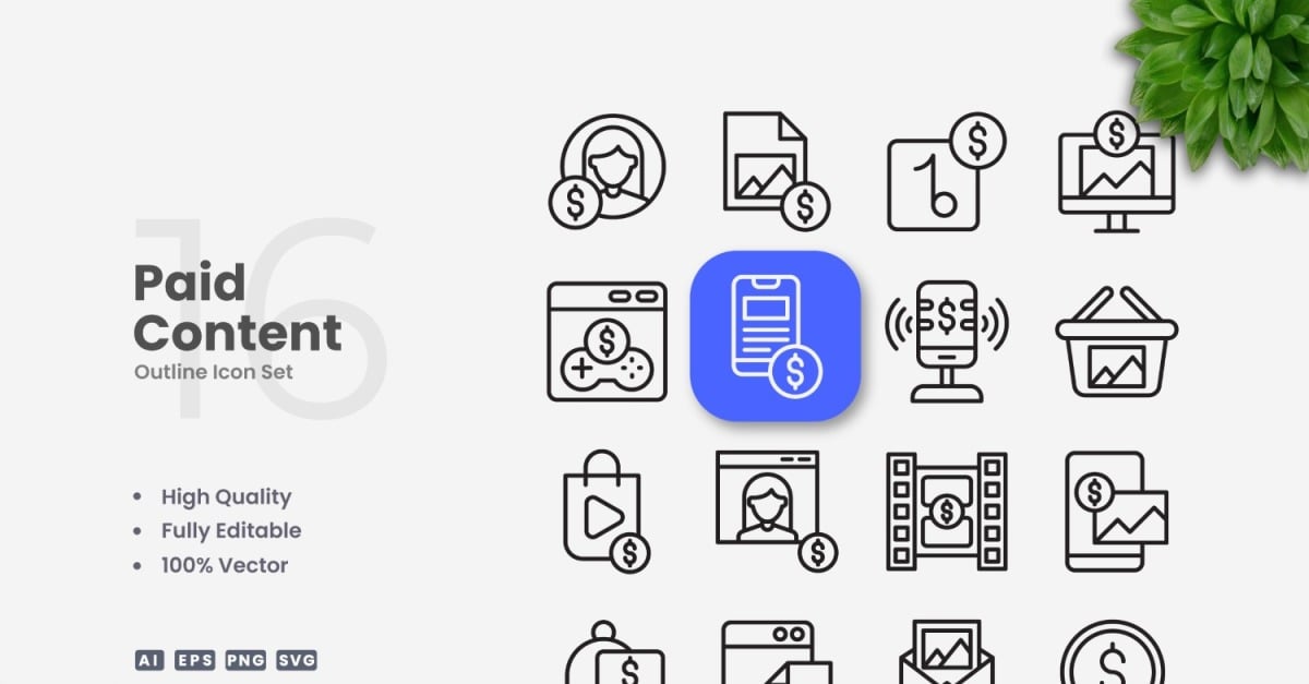 Set of 16 Paid Content Outline Icons | Simple and clean design, perfect for websites, mobile apps, books, social media, infographics, flyer, print, banners, posters and many more. To resize or change color you can easily edit on vector software like Adobe Illustrator and CorelDRAW. Features : High Quality Design100% Vector100% …