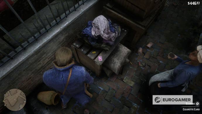 This card is found in a courtyard behind the Bastille Saloon, use the pinpointed location on the map to find the table that it lies on below a small set of stairs and to the left. This should be a relatively simple one to find, and will finish off the collection, which will net you $50 in total.